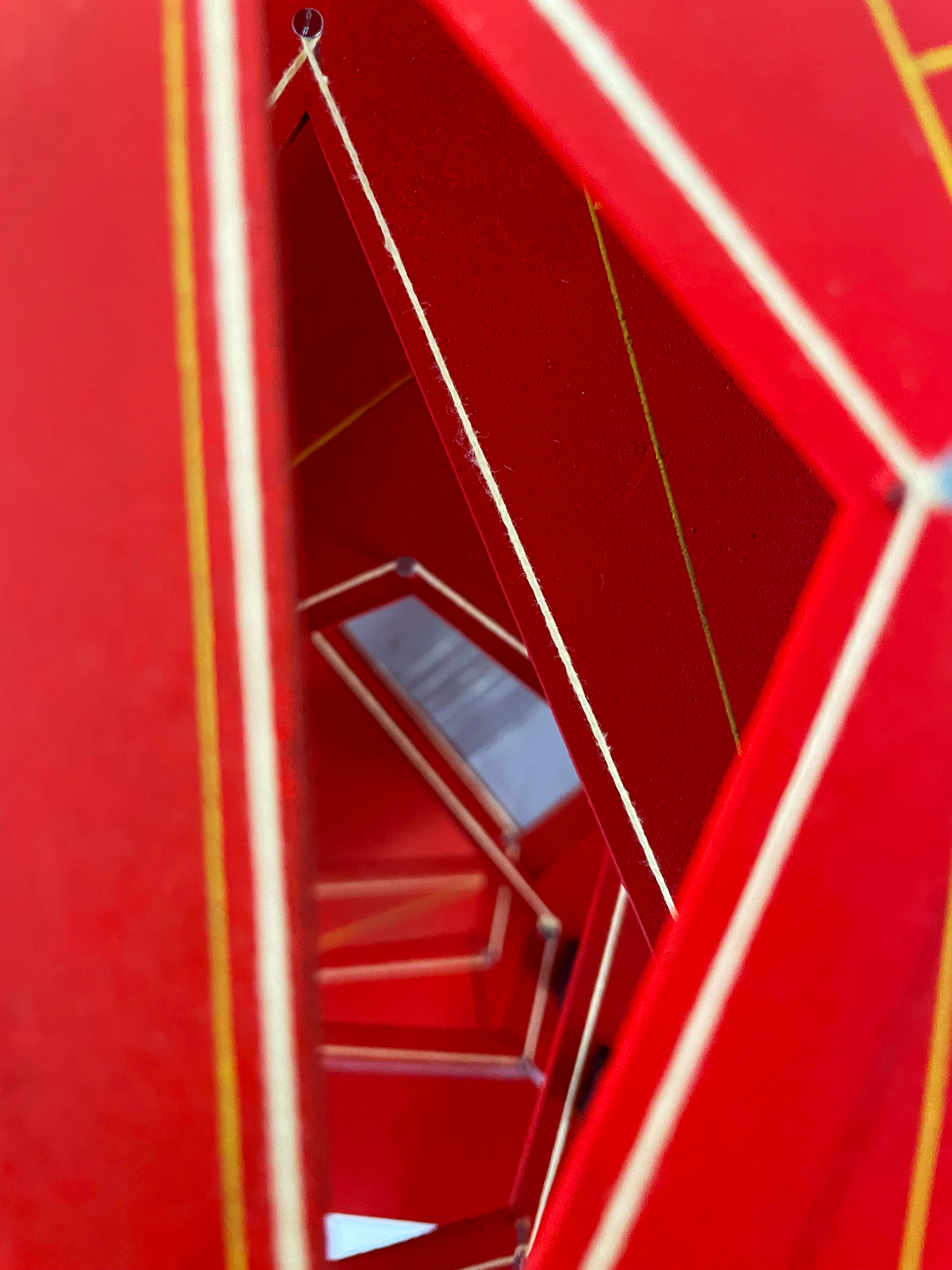 Faceted red metal covers. French music centre by Périphériques