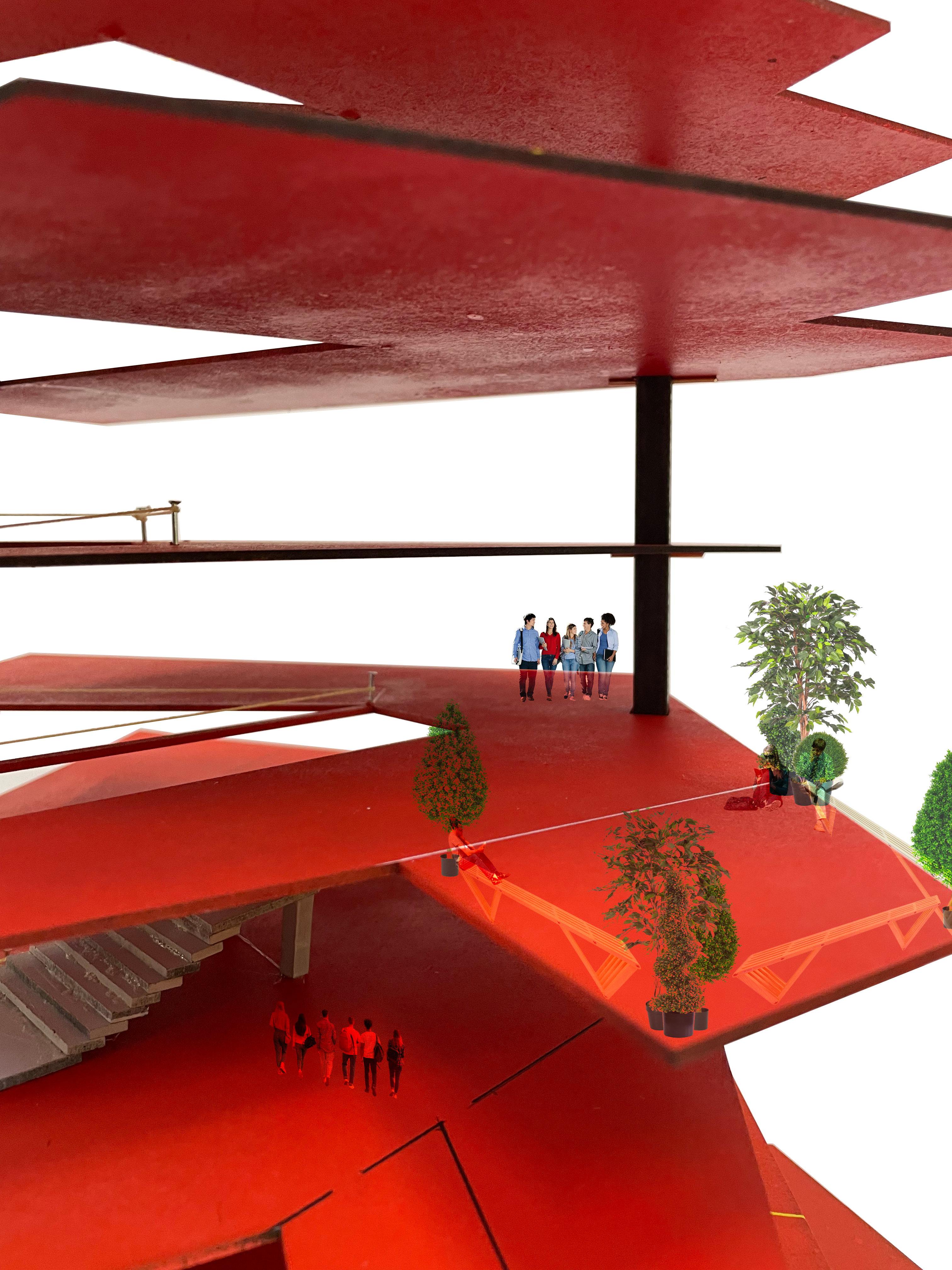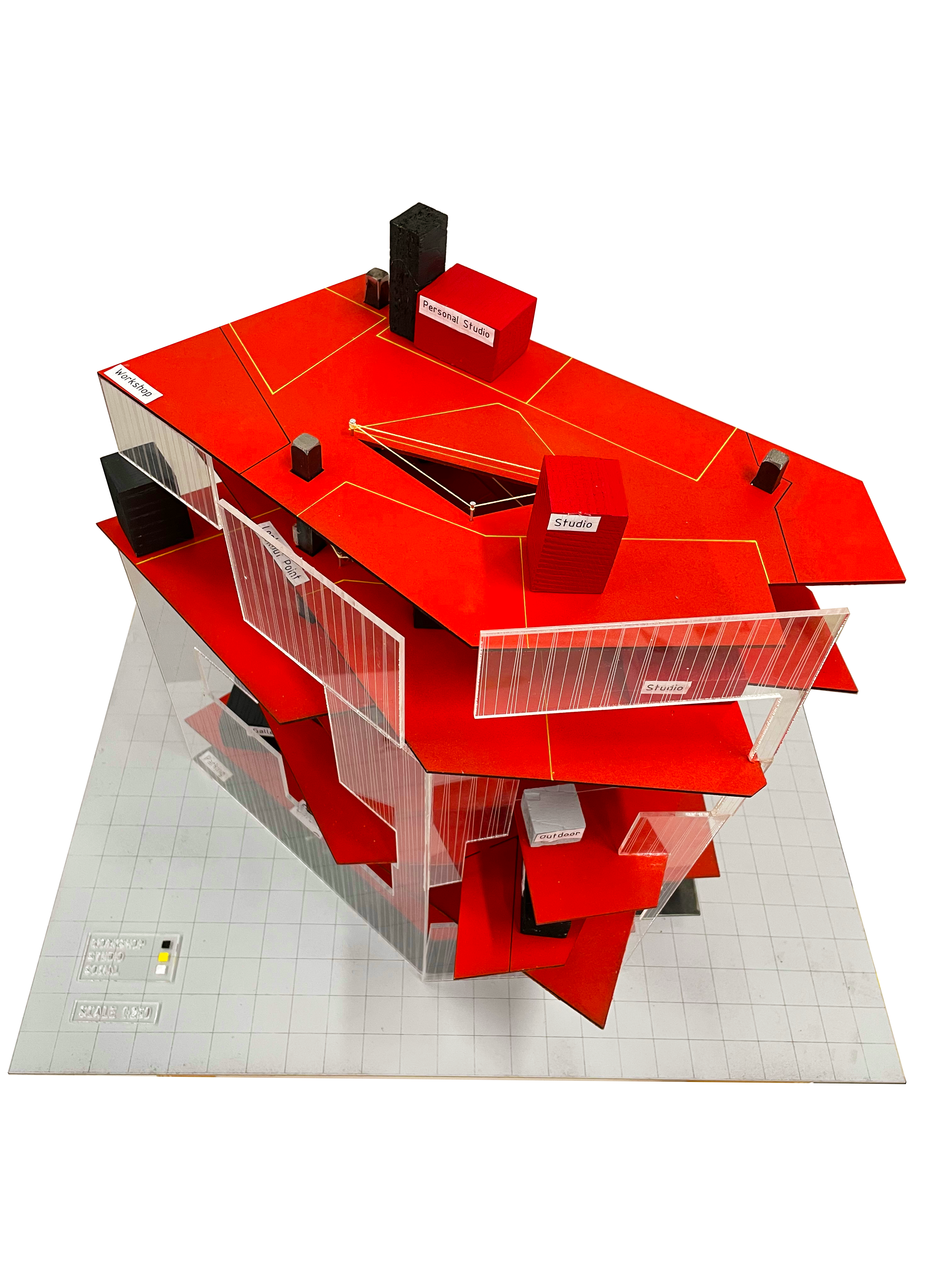Tasked with redesigning the Crawford building, located within the heart of the Perth Road. The building is inhabited by hundreds of art and design students, studying a wide range of degrees. The design proposed is directly inspired by the existing grids present in the building facade and interior. We tackled the large environment by developing a grid system to divide the space. The existing grid was carefully distorted to create a modern, inspiring and unique art school. We simplified the current labyrinth layout to create an easy to navigate building, dividing each floor by purpose. Each year group has a dedicated floor with the addition of a workshop floor and a canteen floor that connect to the Matthew building by existing bridges. The ground floor replaces the current Cooper gallery as a large open area acting as a welcome mat, fostering a relationship with student and the public. The entrance floor encapsulates the gallery space as well as a cafe area and student sale area. The building strives to create a community led interior with voids offering a connection between the numerous floors and into the large social areas. A space to enhance the already once in a lifetime experience of studying art and design at Duncan of Jordanstone College of Art and Design.